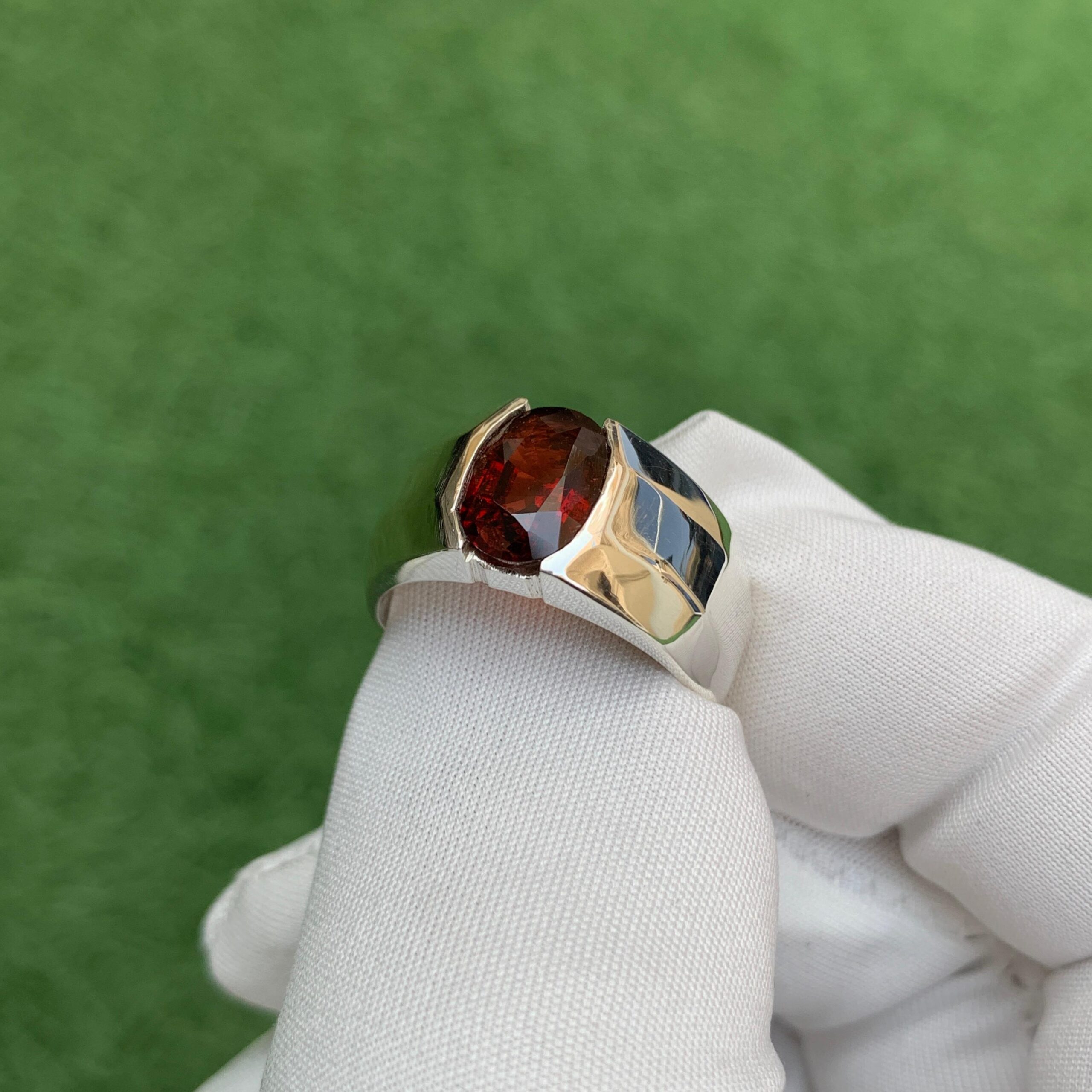 This stunning ring showcases a magnificent 3.3-carat natural garnet, a gemstone celebrated for its rich, deep red hue and remarkable brilliance. Sourced for its authentic beauty, this garnet radiates a captivating fire and warmth that is both elegant and bold. Its classic charm makes it a versatile piece suitable for any occasion.